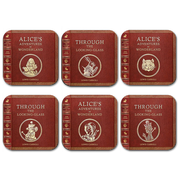 Alice in Wonderland and Through the Looking-Glass by Lewis Carroll Coaster Set. Tea Party Decor. Cheshire Cat, White Rabbit, Mad Hatter, White Queen, Red Queen. Bookish Gift, Literary Gift.