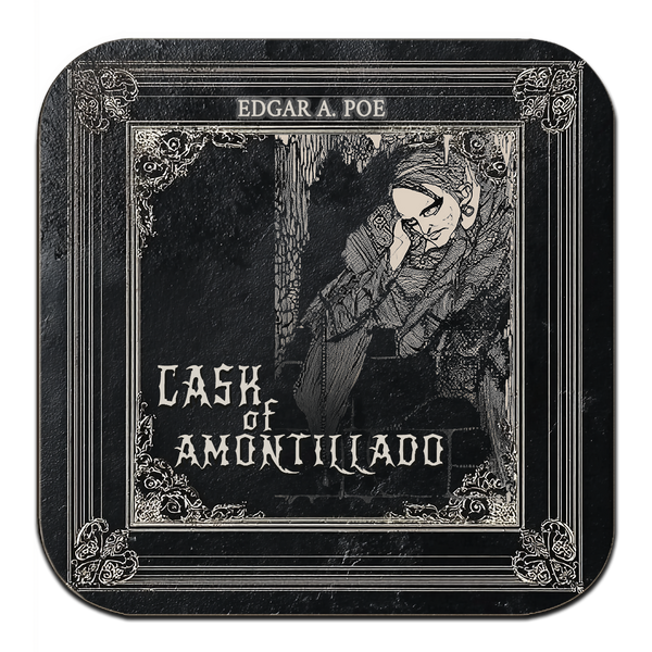 Celebrate the haunting brilliance of Edgar Allan Poe with this shadowed set of 6 literary coasters.